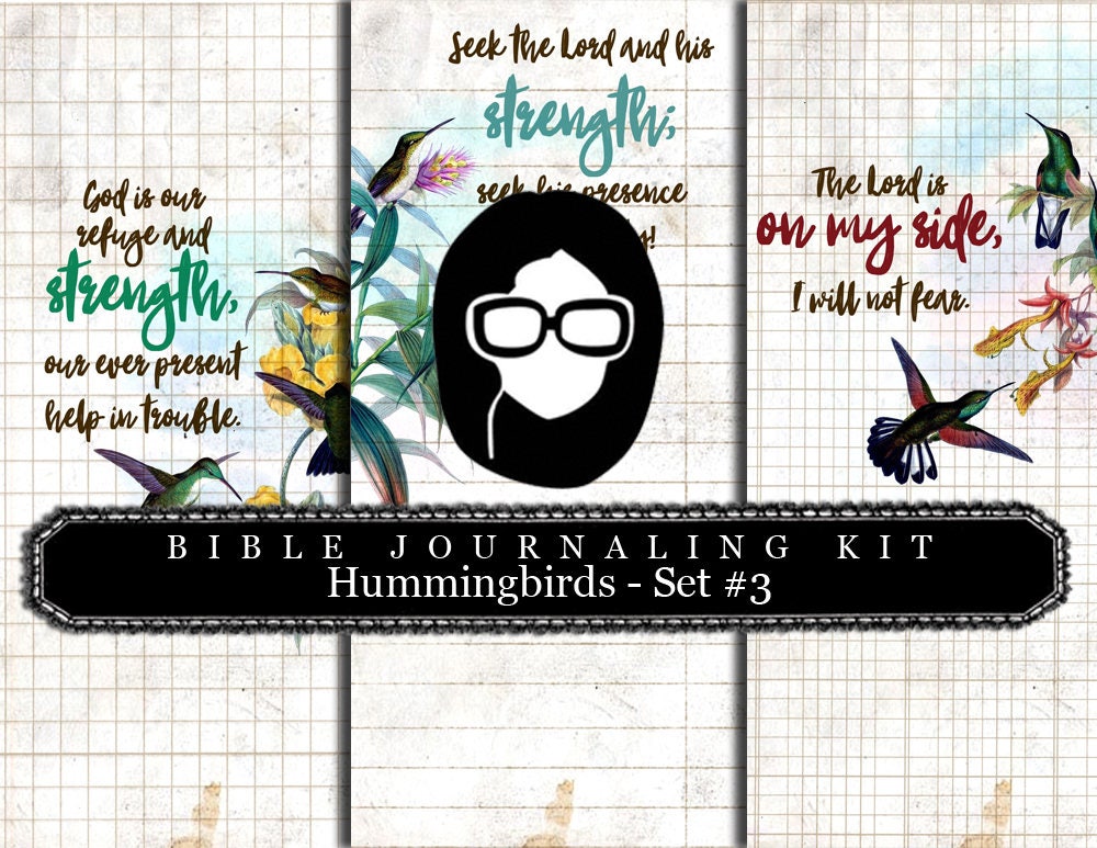 Bible Verses DIY - Hummingbirds Set # 3 - 3 Pg Instant Downloads - digital rose paper, lined journal pages, prayer journaling, scripture art